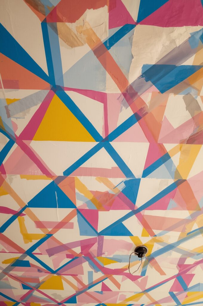 Using tape to create triangles, stripes, or grids on ceilings.