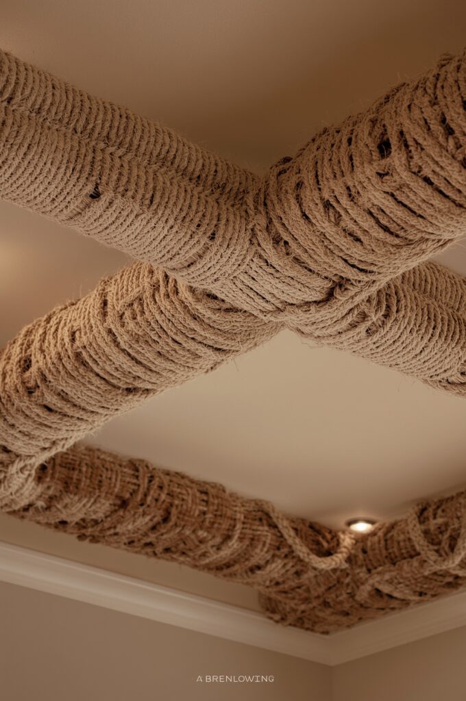 Covering beams or light fixtures with rope.