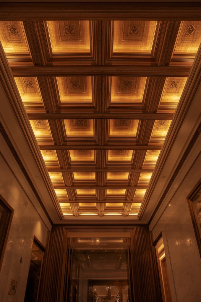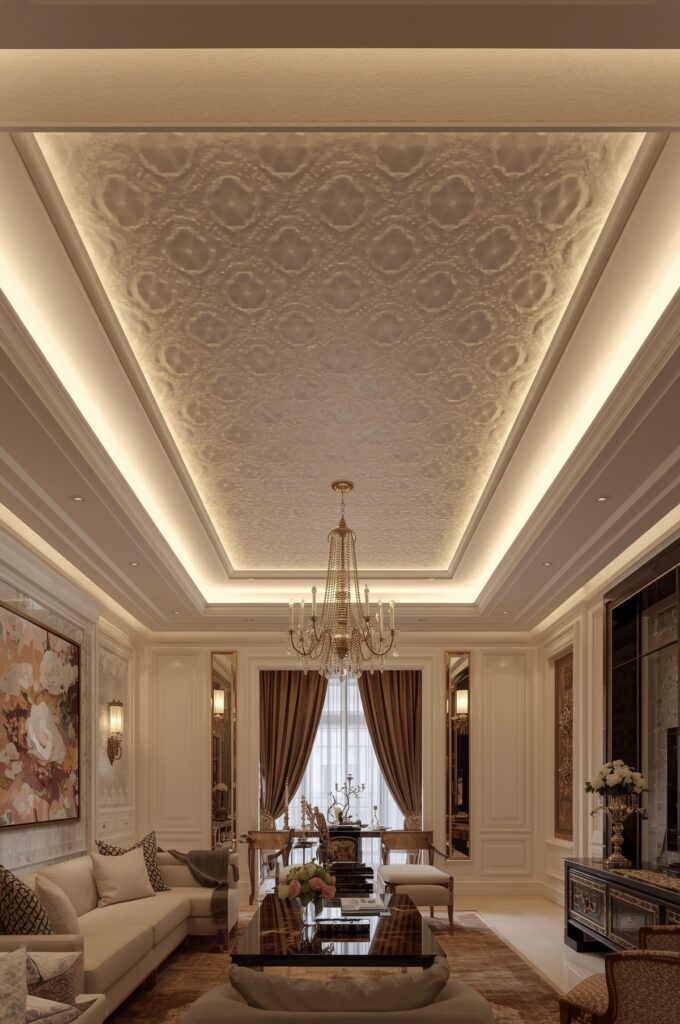 Coffered ceilings use sunken panels in geometric patterns. Adding hidden LED strips enhances their elegance.