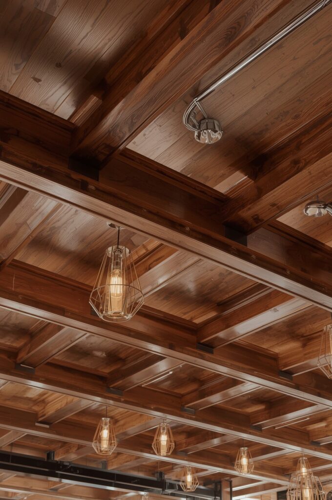 Combining wood beams with sleek panels creates a fusion of rustic and modern.