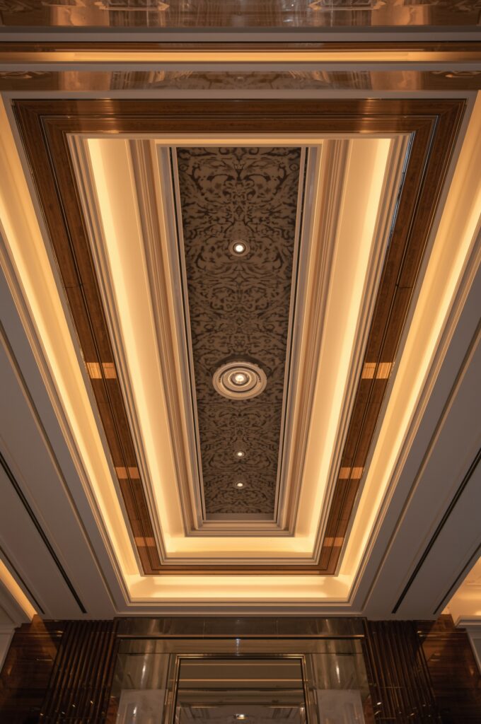 Multi-layered ceilings allow for varying light fixtures and textures.