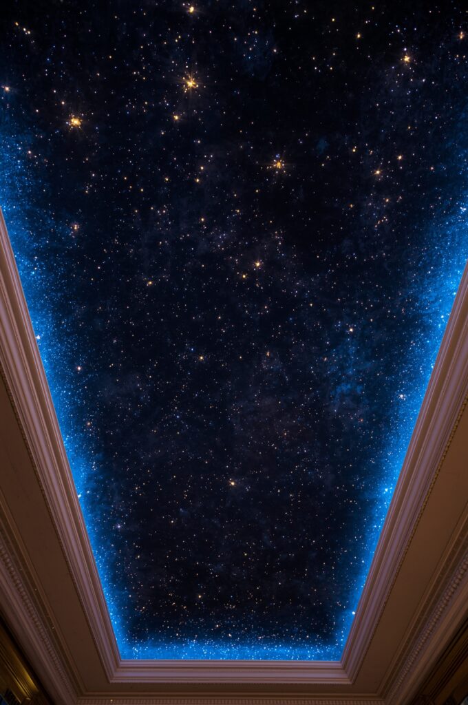 Embedded fiber-optic lights mimic stars on the ceiling.