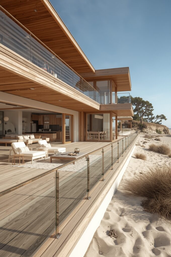 Decks, large windows, and sand-friendly layouts.