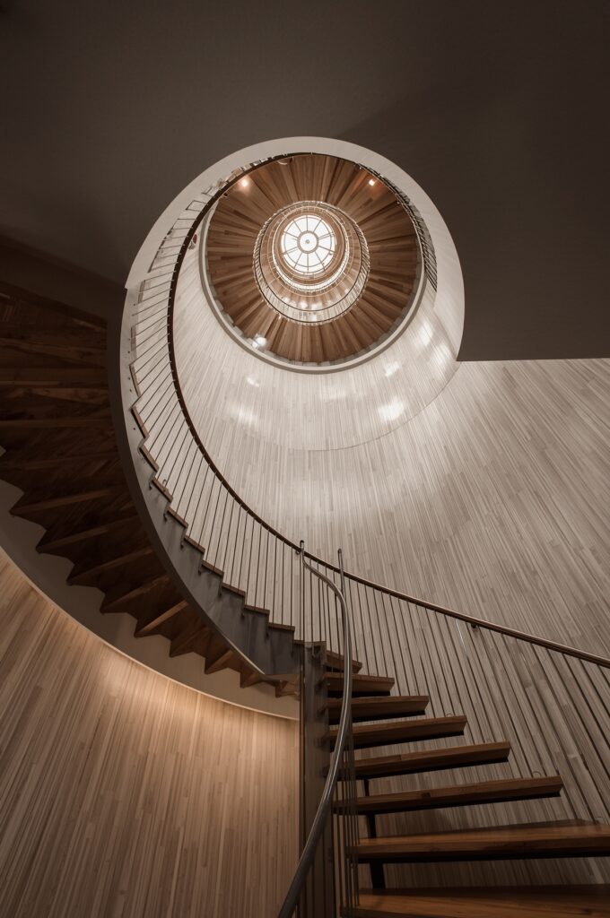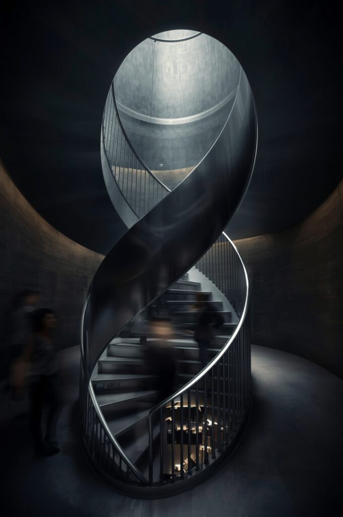 Two intertwining staircases inspired by DNA’s spirals.