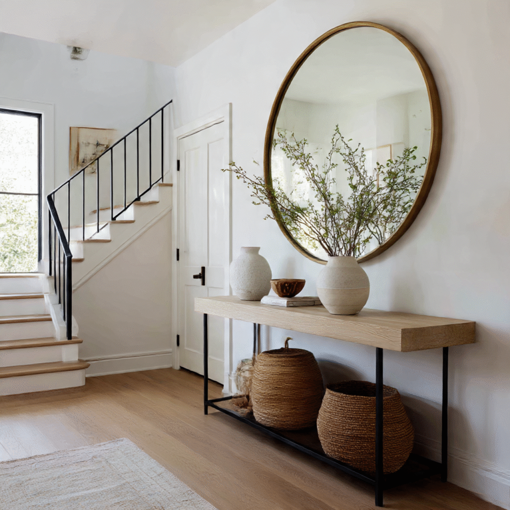 Mirrors reflect light and visually expand rooms, making them appear brighter and larger.