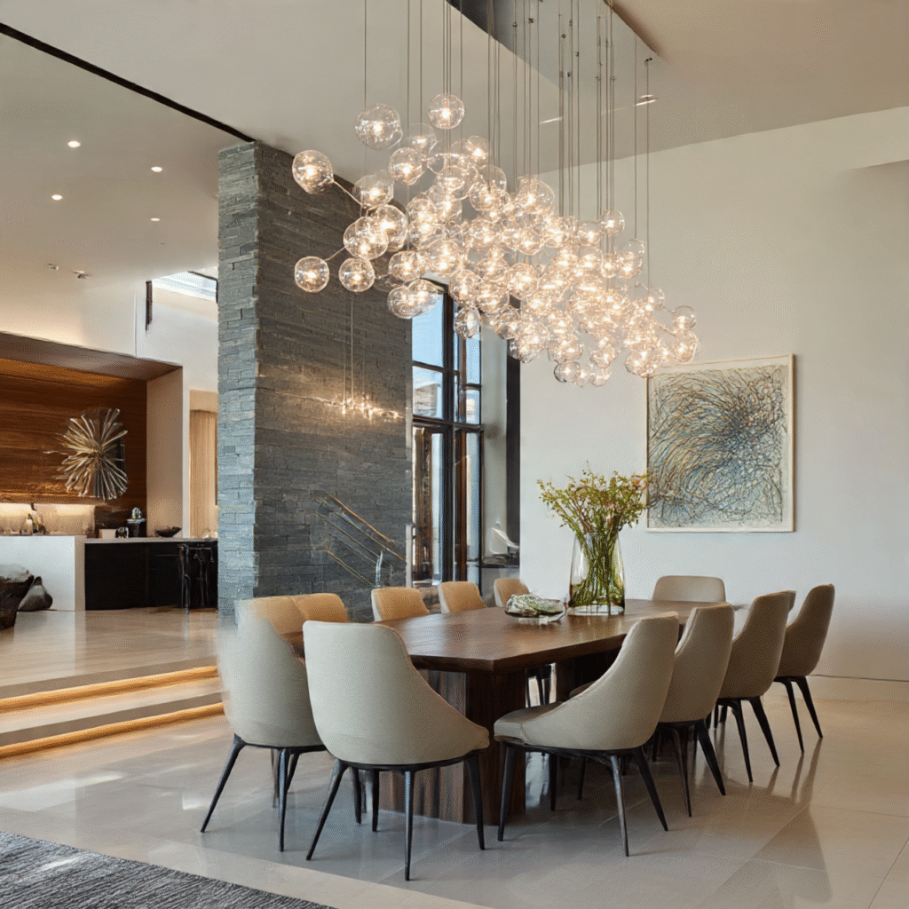 Never underestimate a chandelier or sculptural pendant — lighting is the jewelry of the home.