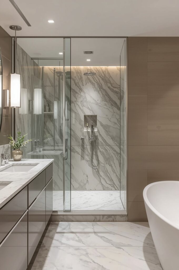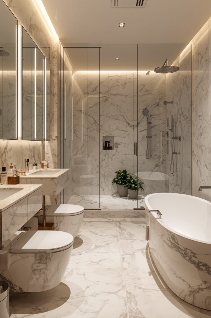 A luxurious bathroom combines high-quality materials, thoughtful layouts, and indulgent features to create comfort, beauty, and function.