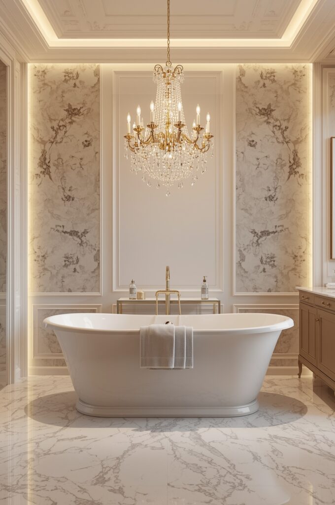 Why: Adds glamour and transforms the bathroom into a focal point.