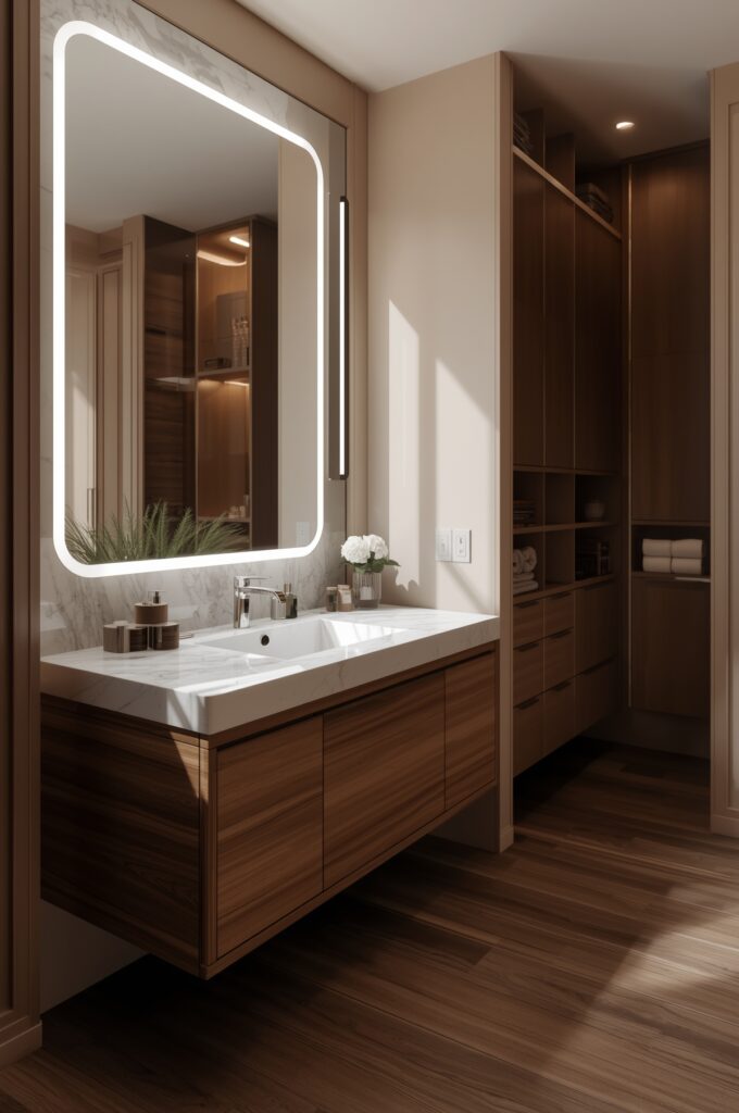 Why: Keeps the bathroom cozy during colder months—true luxury comfort.
