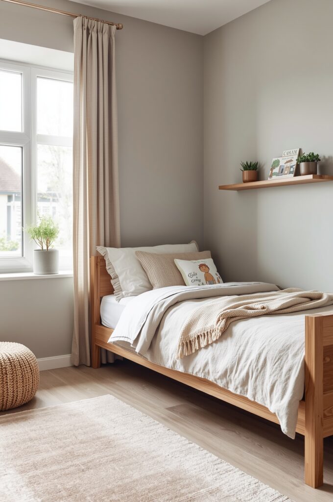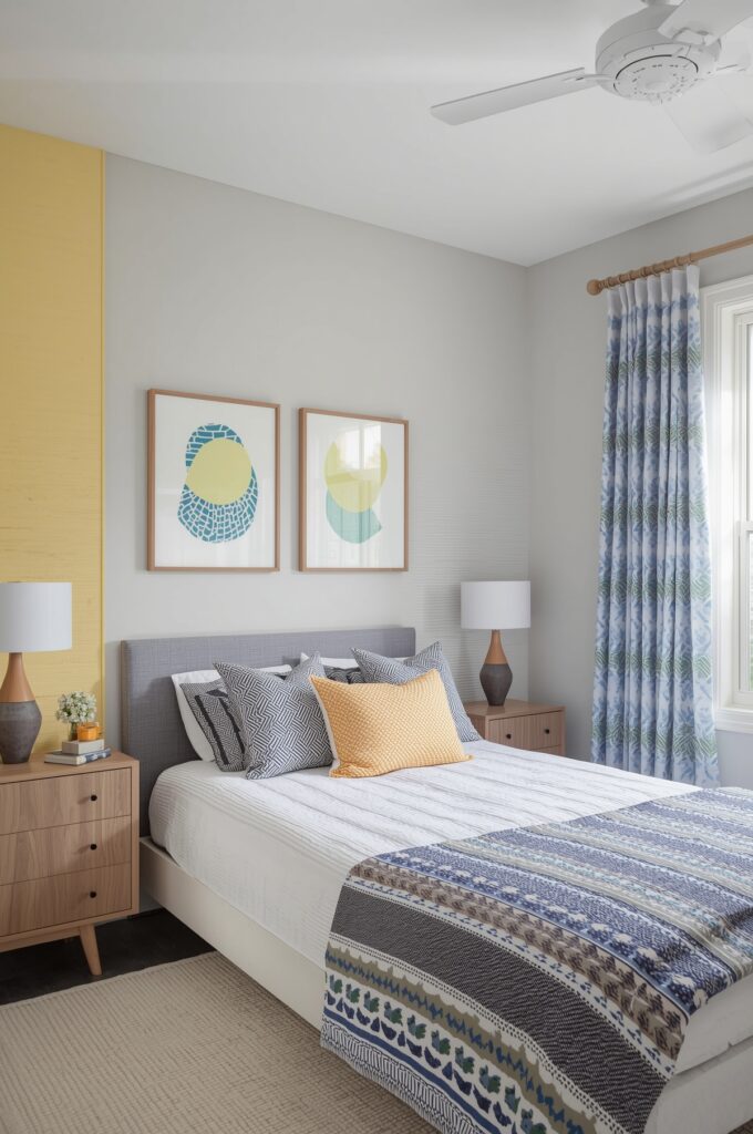 Instead of overly colorful walls, many modern kids’ rooms now feature neutral tones—like beige, grey, or soft white—accented by bold pops of yellow, green, or blue through décor.