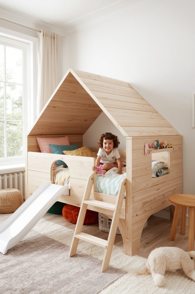 Imagine a bed that doubles as a mini playhouse. These designs feature little roofs, slides, or ladders, making bedtime exciting while encouraging play.