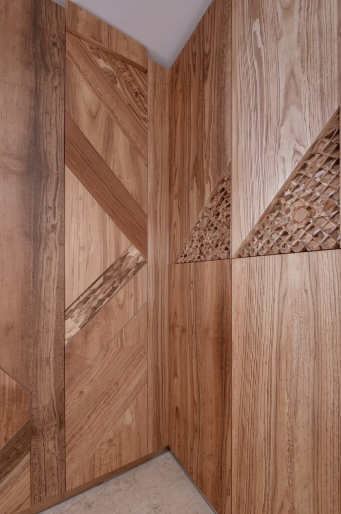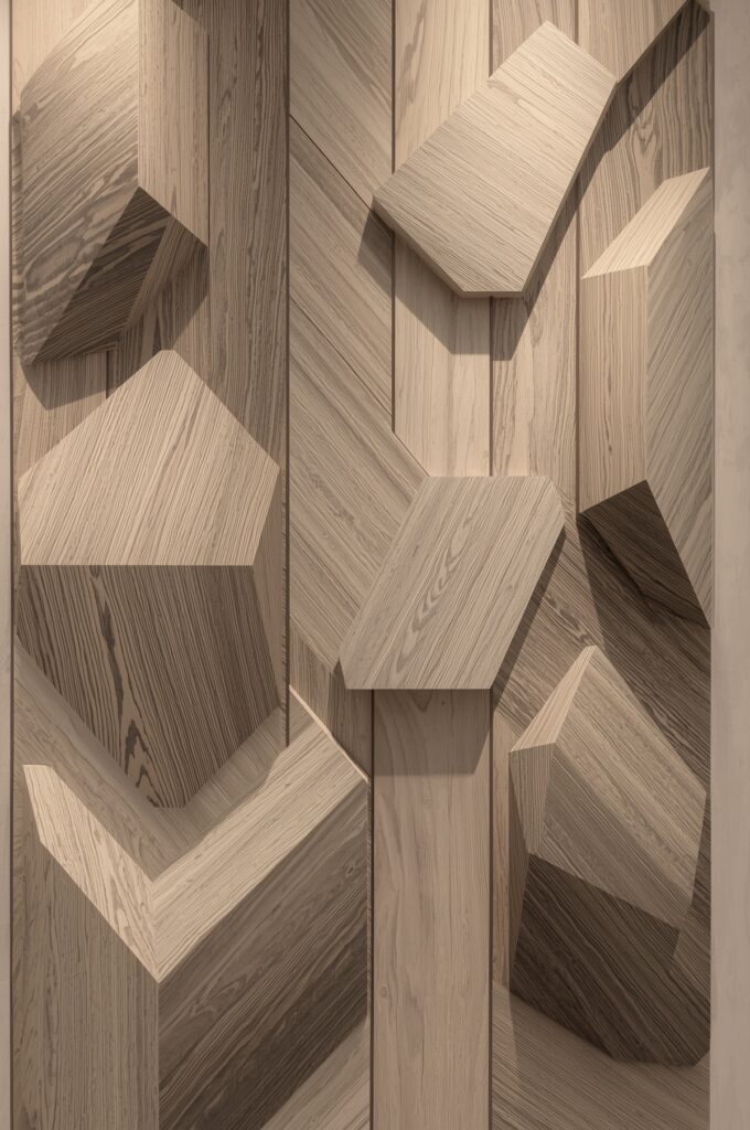 Panels carved with unique geometric patterns—triangles, diamonds, or hexagons—make walls look dynamic and modern.