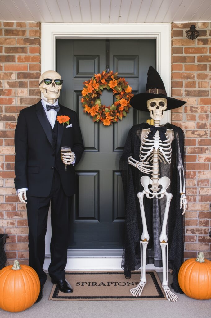 Life-size skeletons dressed as butlers, witches, or party guests add personality and instant spook factor to your porch.