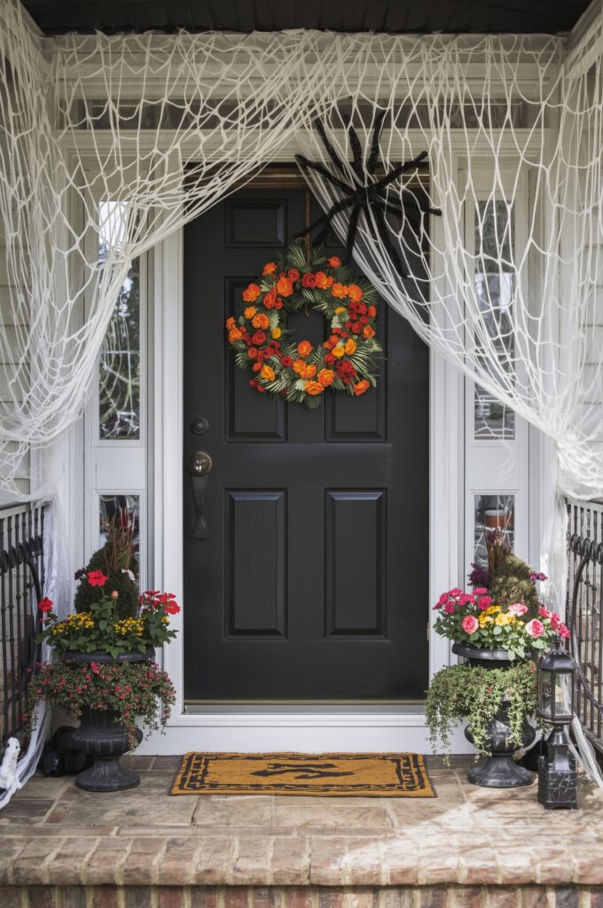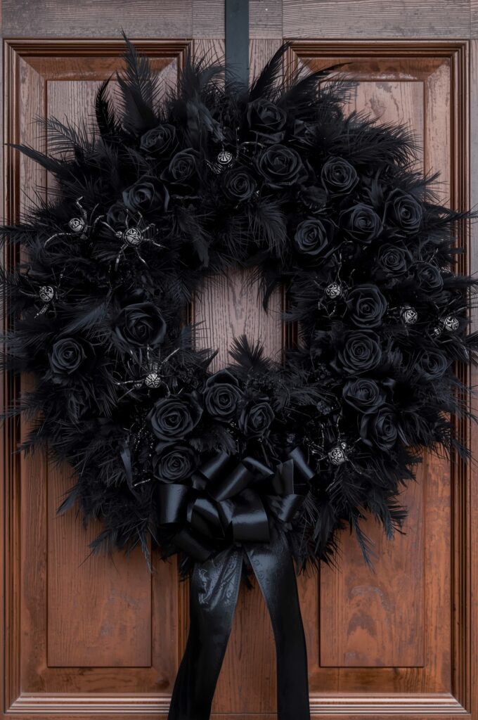 Swap out your traditional fall wreath for one made with black feathers, faux spiders, or dark roses for a gothic-chic touch.
