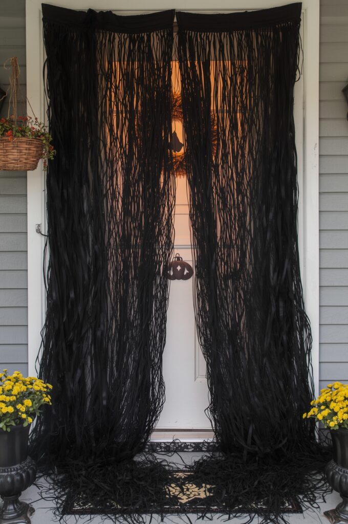Hang shredded black curtains or cheesecloth from your doorway to make trick-or-treaters push through a haunted entrance.