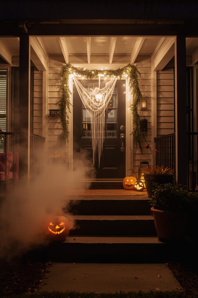 Set up a fog machine near your porch steps. Combined with spooky lights, it creates a dramatic, haunted-house vibe.