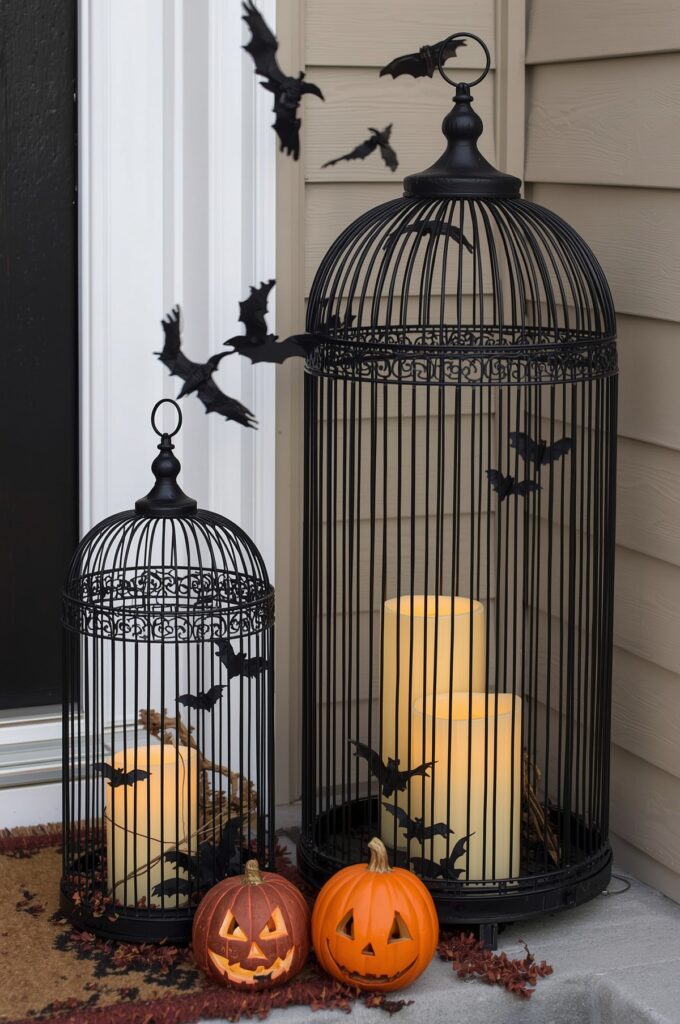 Old birdcages filled with skeleton birds, bats, or flickering candles make eerie porch accents. Spray paint them black for a gothic finish.