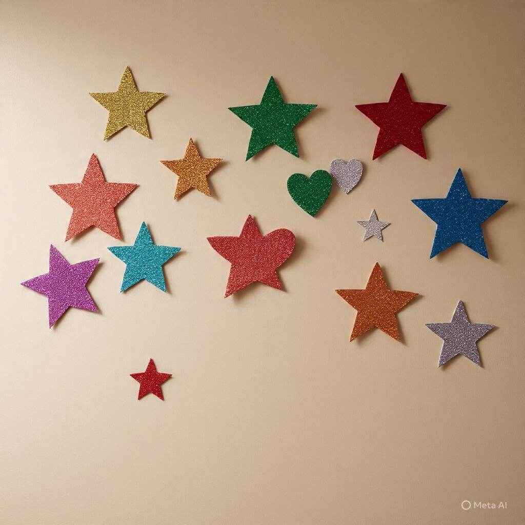 Cut stars, hearts, or letters from cardboard and wrap them in glitter paper. Arrange them on the wall for a customized birthday theme.