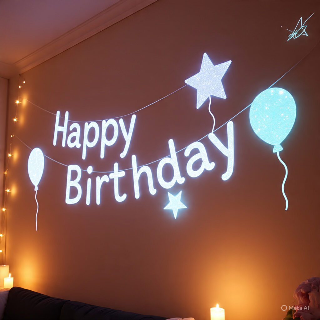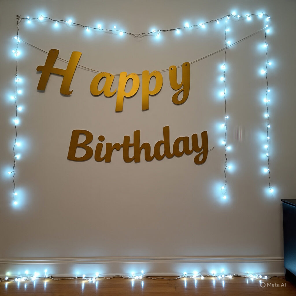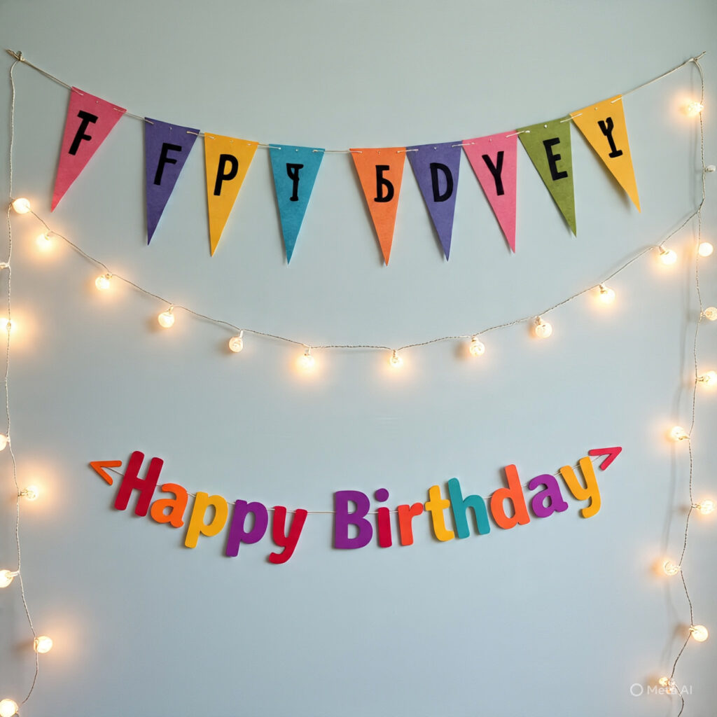 Nothing says celebration like a bold “Happy Birthday” banner. Go for glittery or metallic letters to make your wall sparkle. Hang it at eye level for maximum impact.