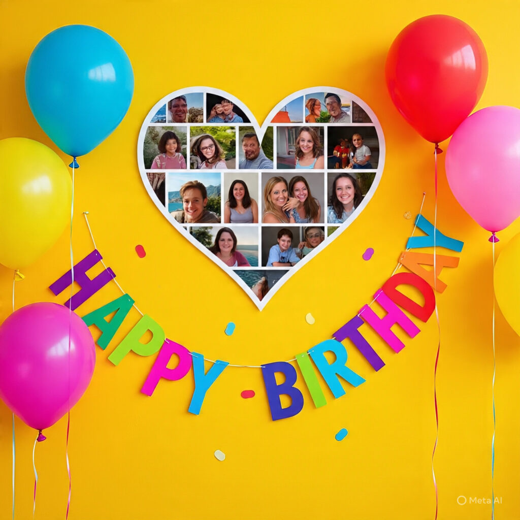 Print your favorite pictures of the birthday person and stick them creatively in the shape of a heart, number, or grid pattern. It adds a personal and emotional touch to the celebration.