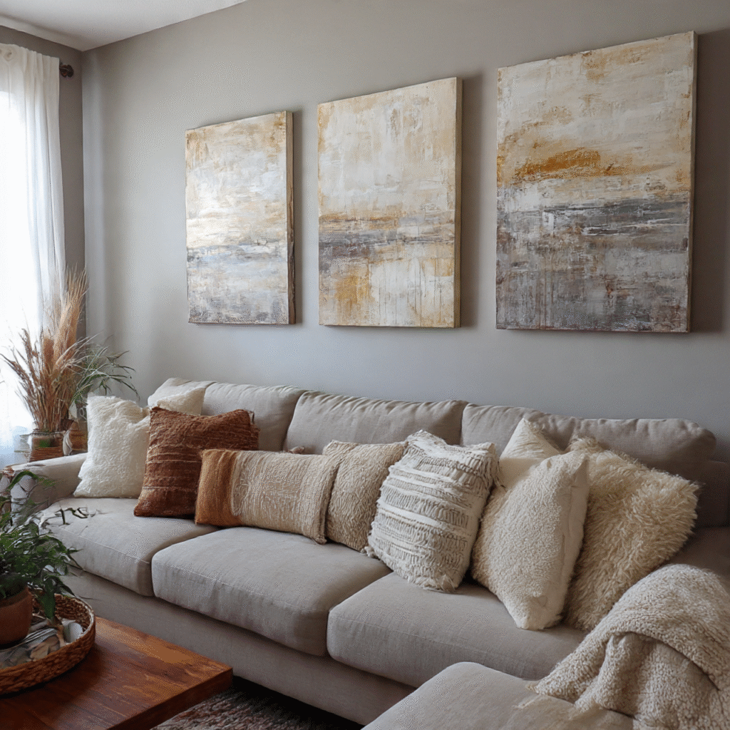 Create abstract art using acrylics, texture paste, or fabric scraps — personalize your decor affordably.