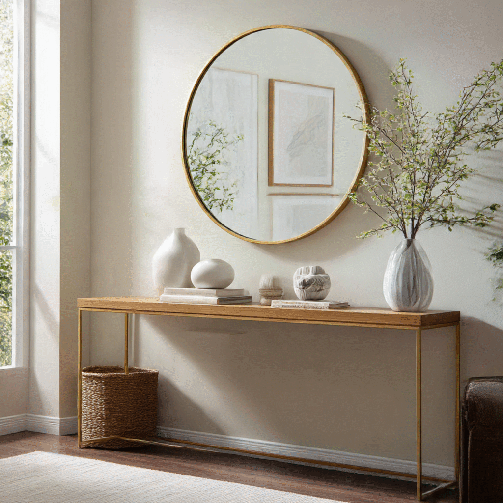 A large mirror instantly opens up any space and adds elegance — ideal for entryways.