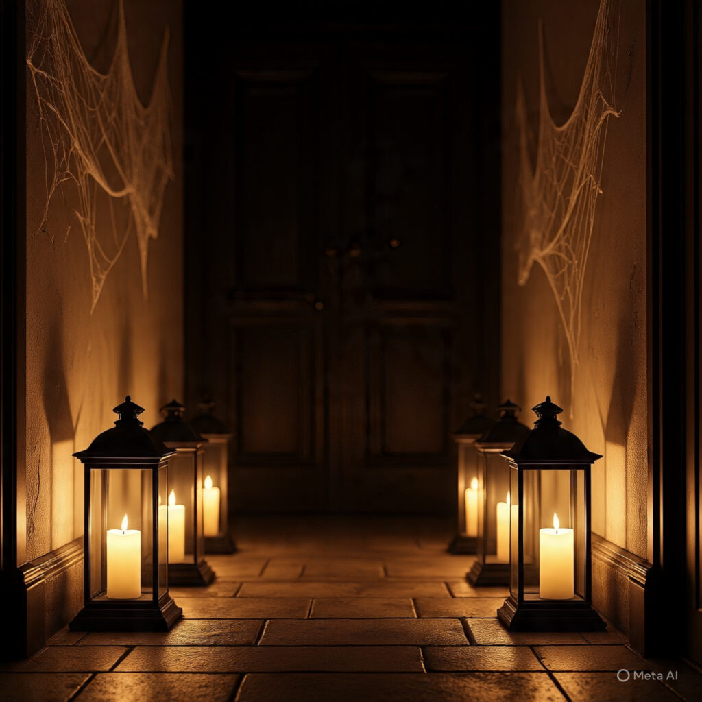 Line your entryway with gothic-style lanterns holding flickering LED candles. The soft glow immediately sets a spooky yet inviting tone.
