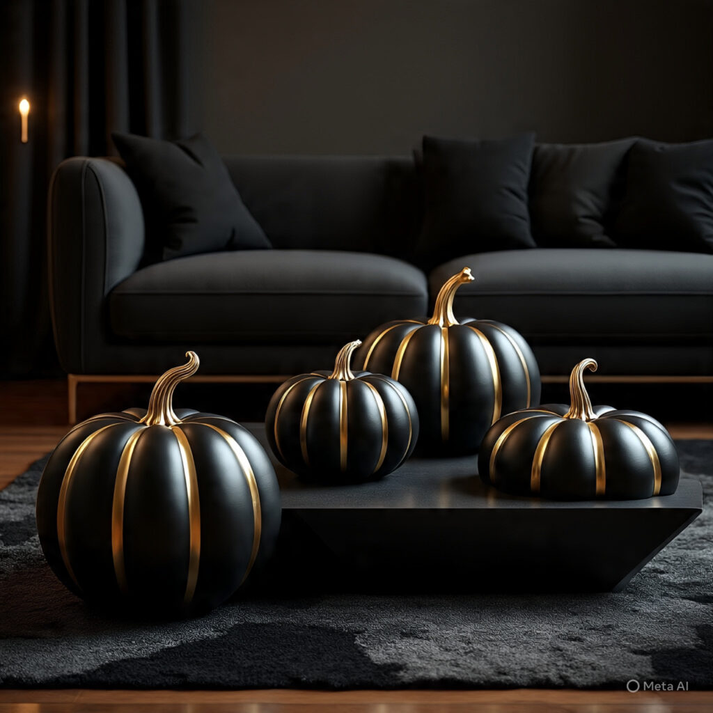 Forget bright orange. Chic Halloween décor leans into matte black and metallic gold pumpkins. Arrange them on your dining table or mantel for a look that’s stylish and festive.