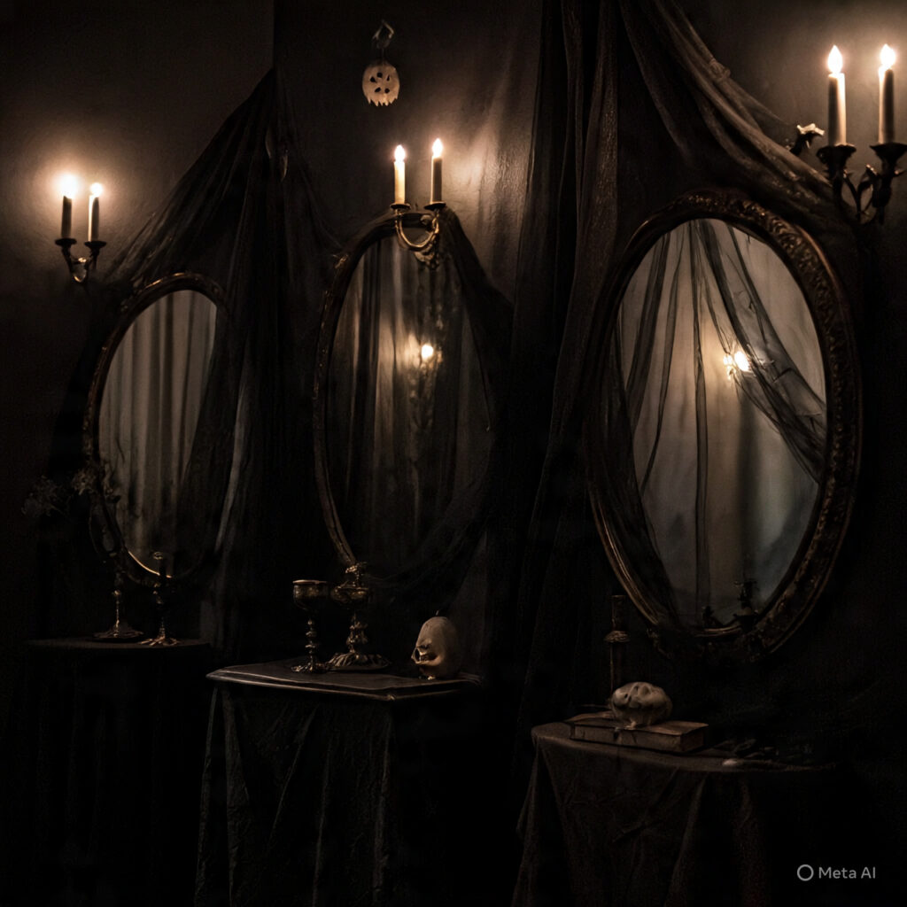 Why it works: Mirrors already hold symbolism in spooky folklore—this makes them centerpiece-worthy.