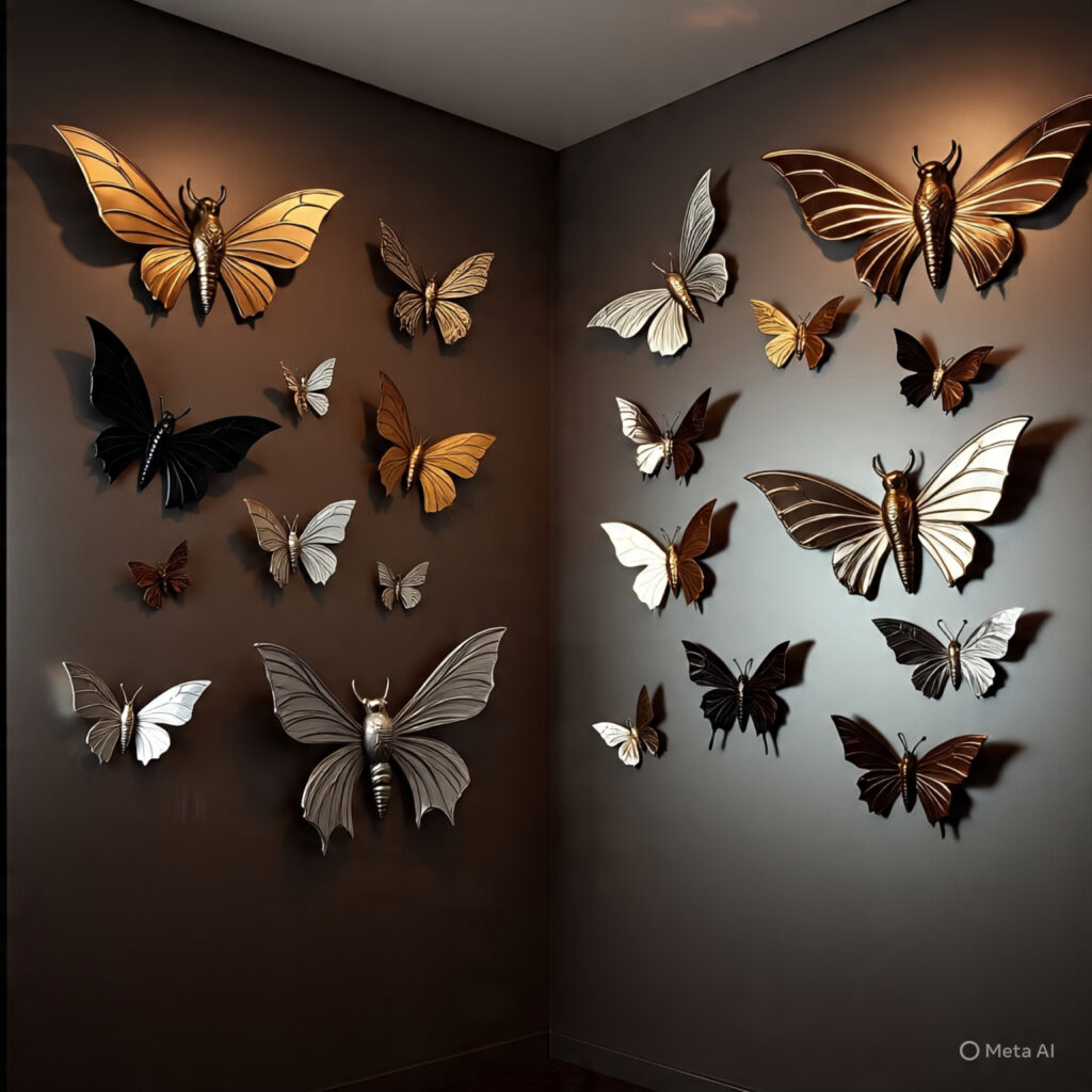 Stick metallic bats or butterflies on your walls. Choose shades of gold, copper, or silver for a chic contrast.