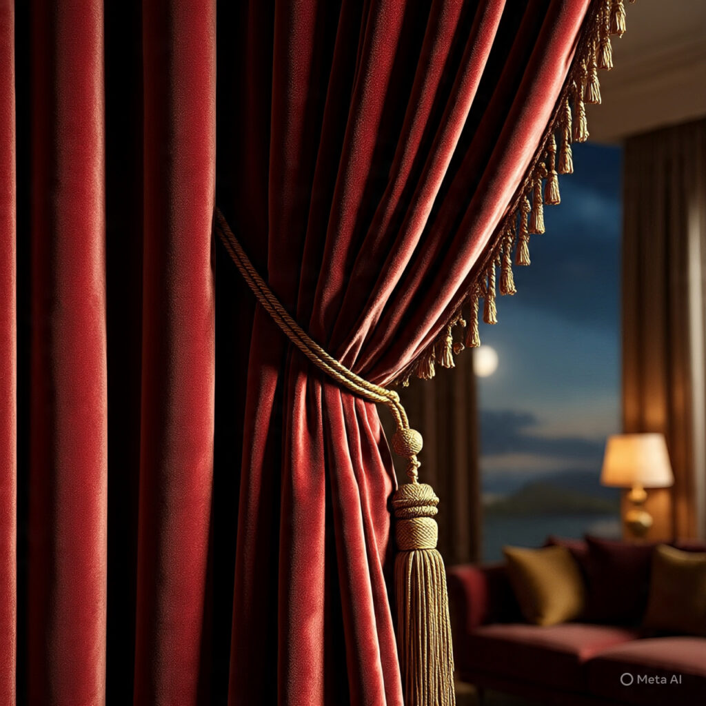 Opt for blackout curtains in rich textures like velvet. Tie them back with gold or silver rope.