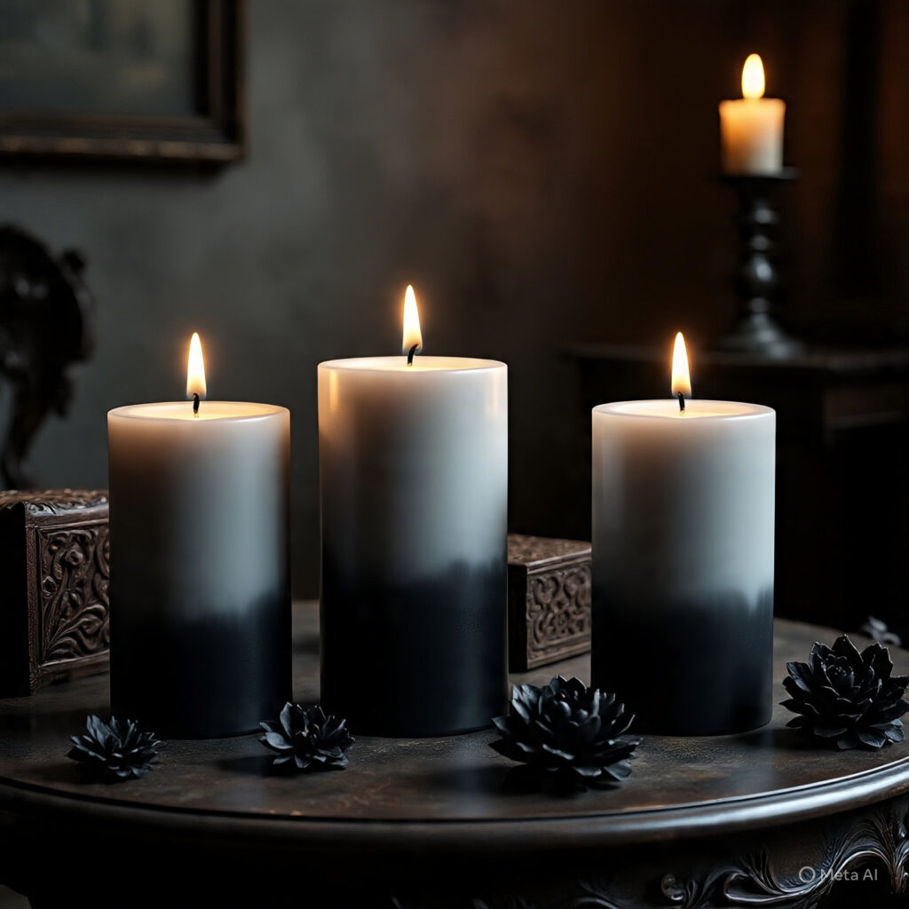 Swap out plain candles for ombre ones that fade from black to gray or burgundy.