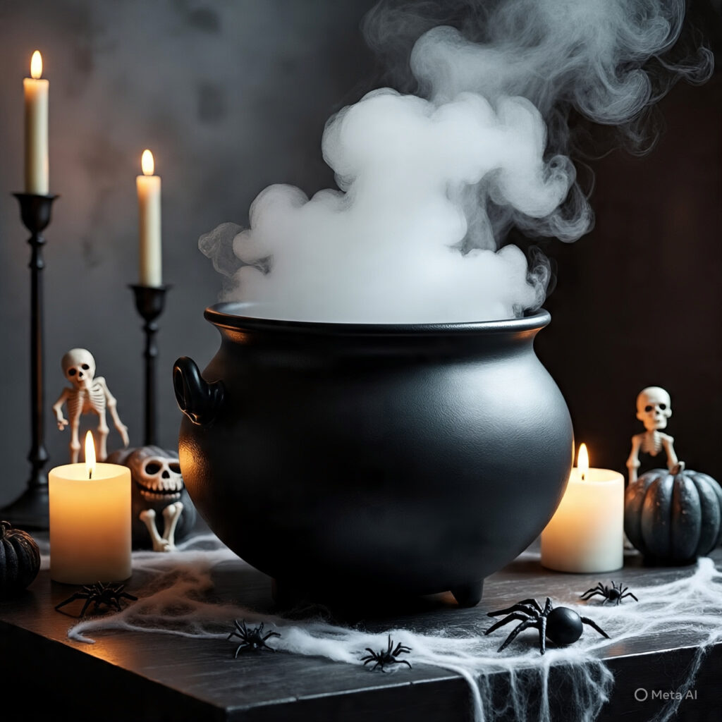 Instead of a plastic cauldron, use a matte black ceramic bowl filled with misty dry ice.