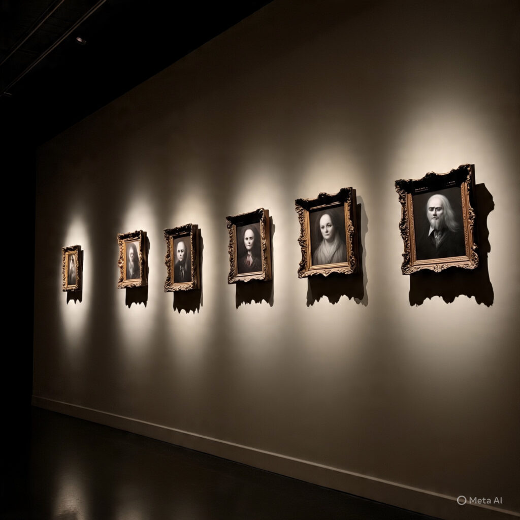 Switch out your usual wall art with eerie black-and-white portraits in antique-style frames. Bonus: add LED backlighting for an ominous glow.