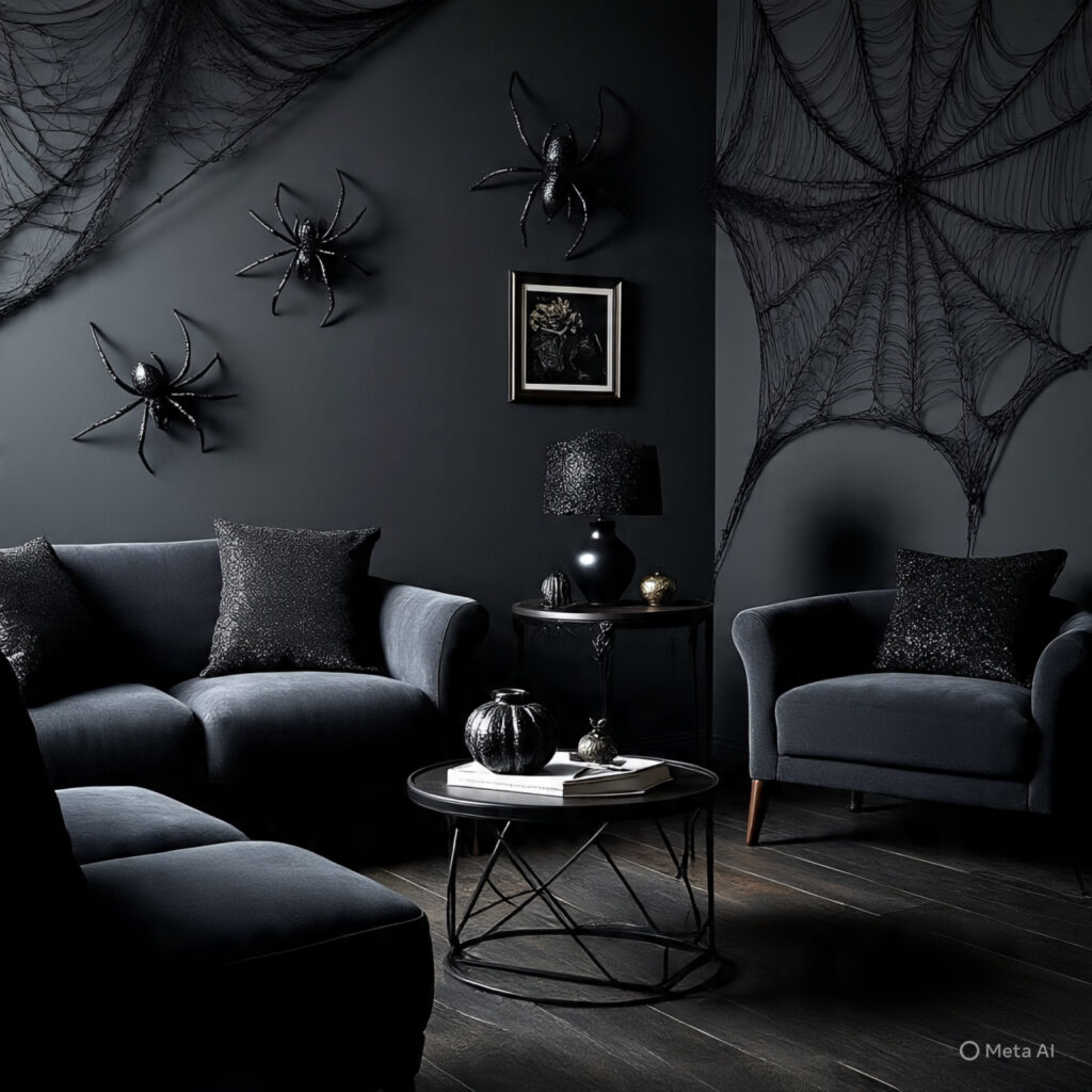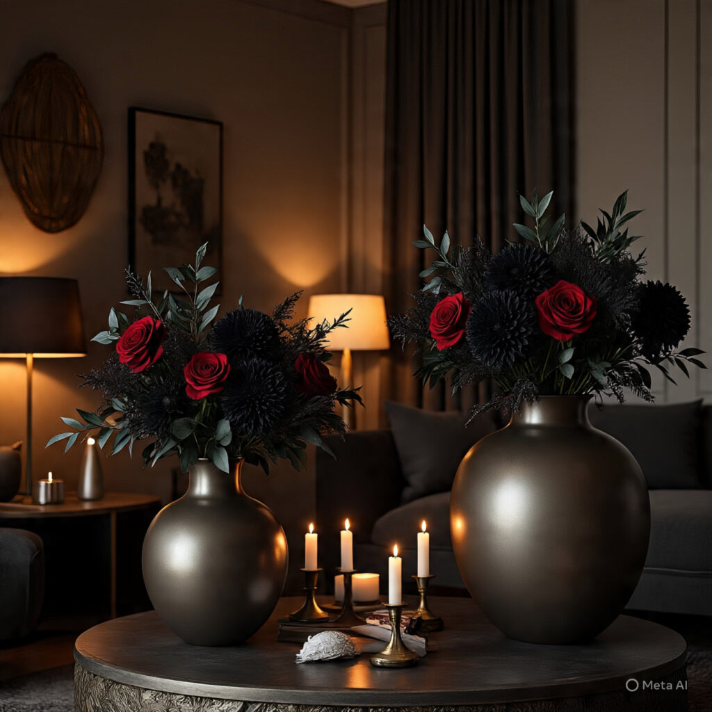Why it works: Flowers balance spookiness with beauty, giving your space a gothic-romantic vibe.