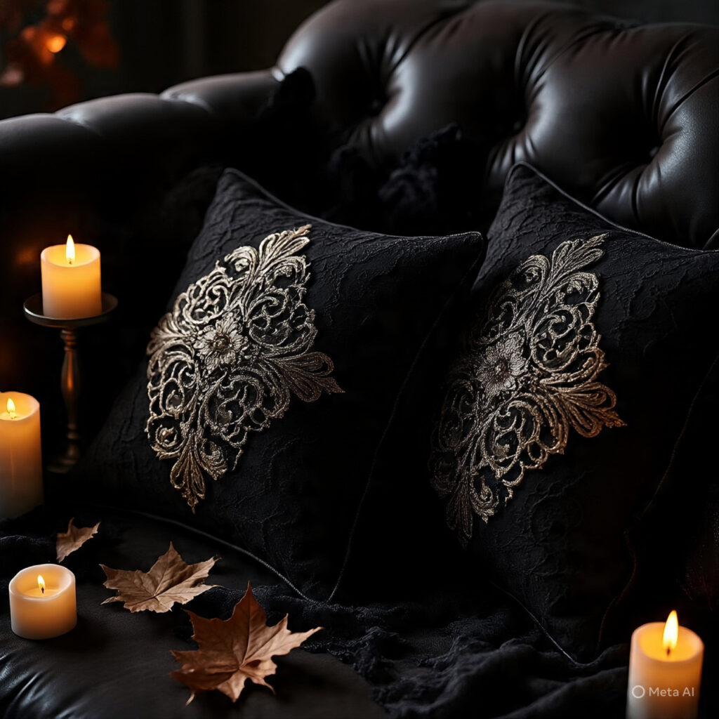 Swap your everyday pillows for black lace or velvet covers. Add metallic embroidery for an upscale feel.