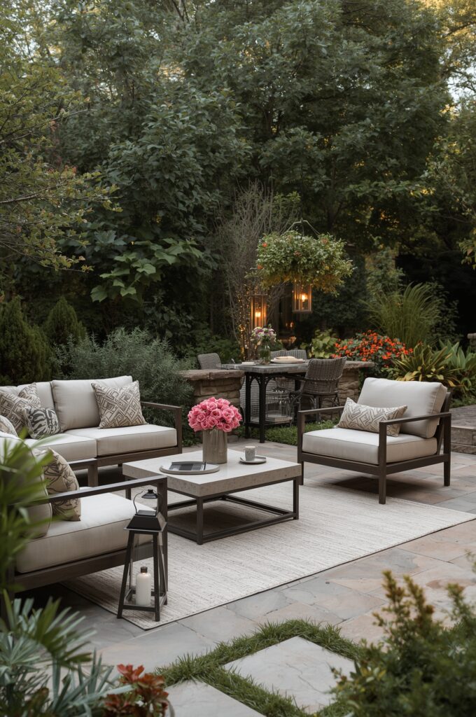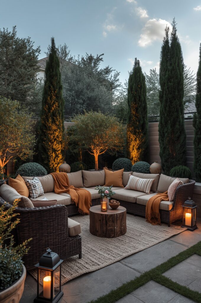 Turn a quiet patio corner into a snug retreat with cushioned sectionals, lanterns, and soft throws.