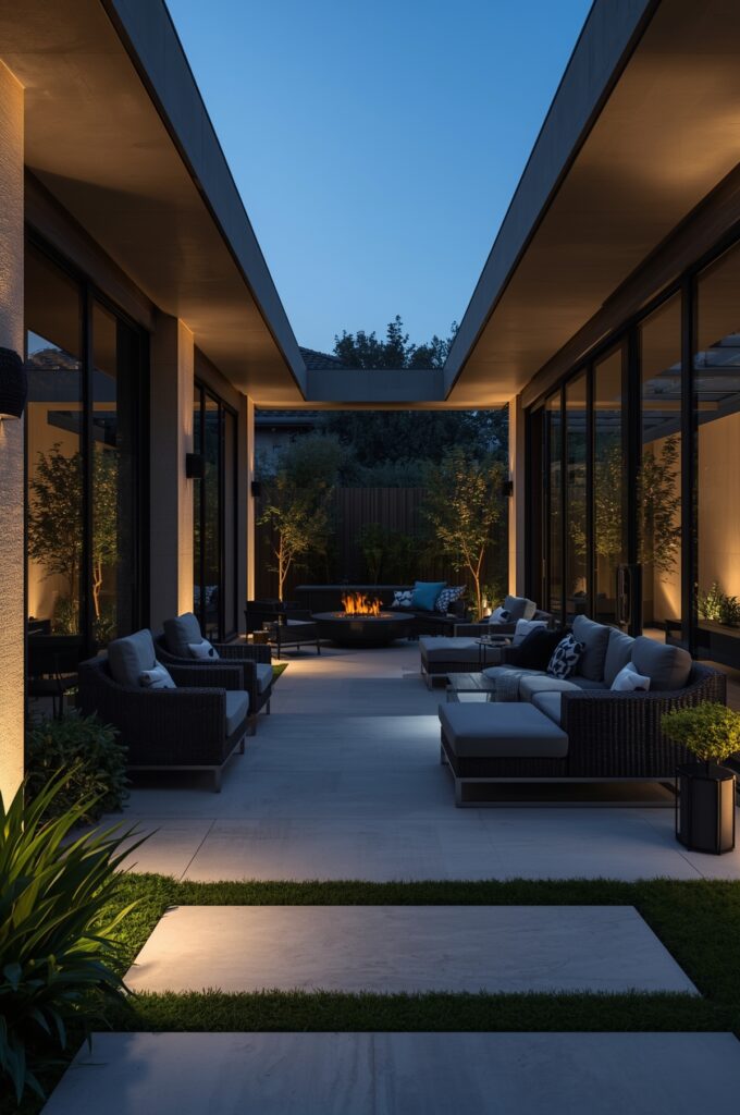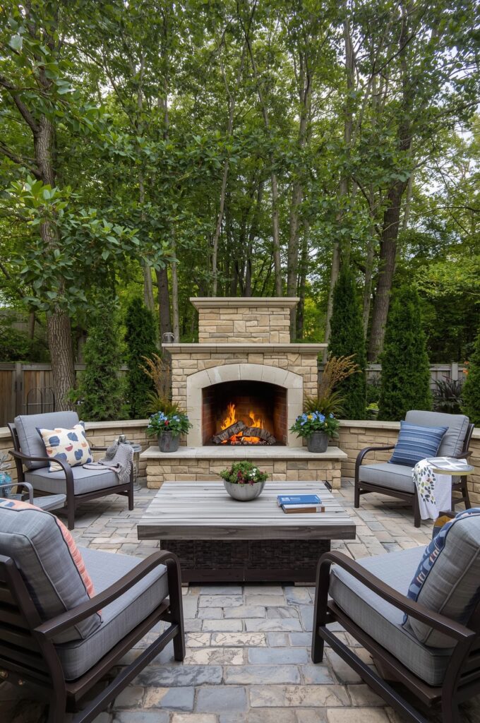 Placing a fireplace at the heart of your patio instantly adds warmth and ambiance. Stone or marble surrounds make it feel even more luxurious.