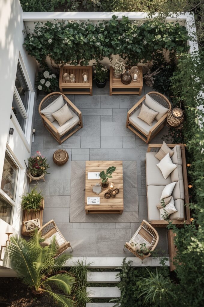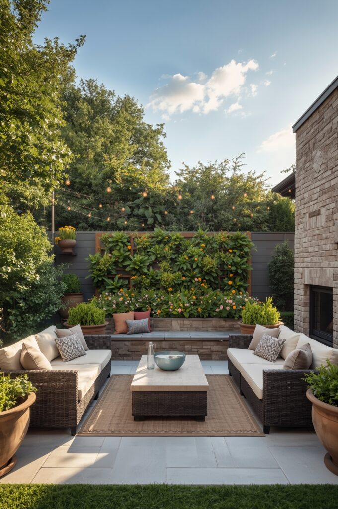 Surrounding your patio with lush greenery, planters, or vertical gardens makes the layout feel private and refreshing.