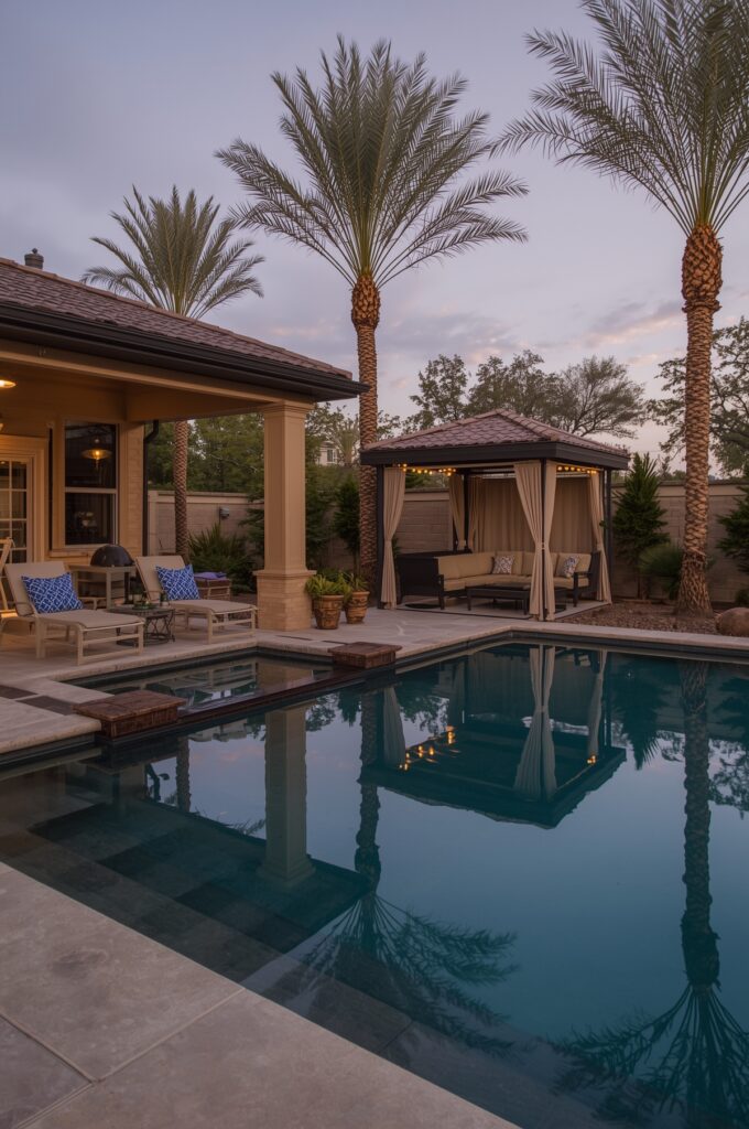 Connecting your patio seamlessly with an infinity pool creates a resort-like vibe in your backyard. Lounge chairs and cabanas complete the look.