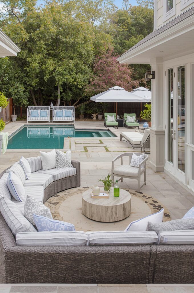 Think oversized sectionals, daybeds, and umbrellas by the poolside. This layout makes your home feel like a five-star getaway.