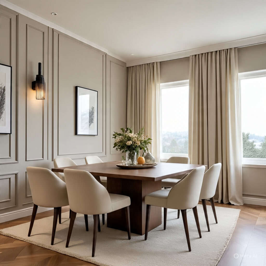 For timeless appeal, remodel your dining room with neutral tones like beige, cream, and gray. These shades create a calm and sophisticated environment.