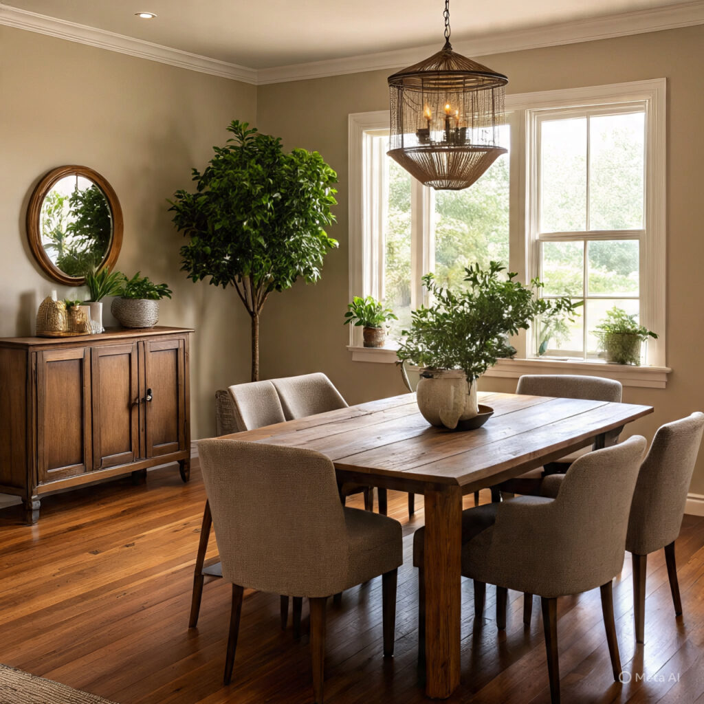 Wooden tables, exposed beams, and vintage chairs are timeless. A rustic dining room remodel makes your home feel warm and grounded while adding personality to the dining space.
