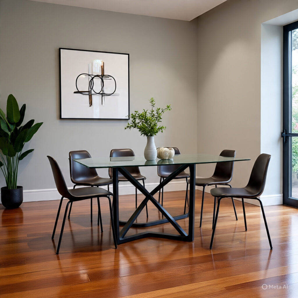 For a sleek and airy look, remodel with a glass dining table paired with metal or leather seating. This design makes even smaller rooms feel larger.