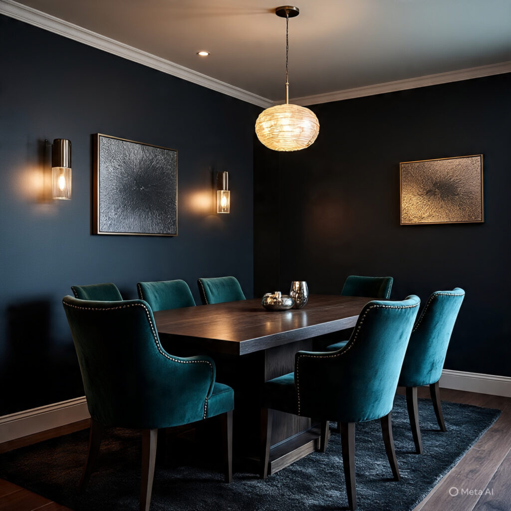 Remodel with deep tones like navy, charcoal, or emerald for a dramatic vibe. Paired with metallic finishes, it creates a chic, modern dining experience.