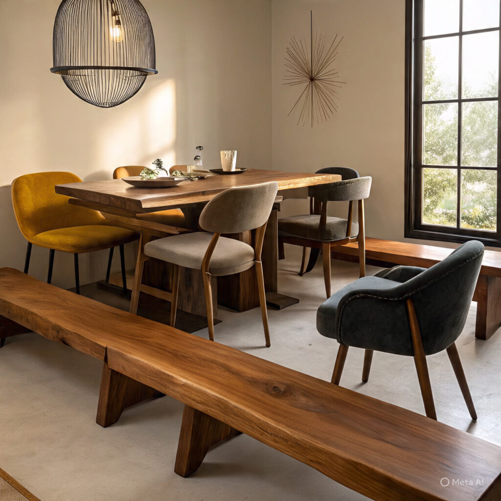 Gone are the days of perfectly matched dining chairs. Mixing upholstered chairs with wooden benches or using bold accent seats adds a touch of personality to the remodel.