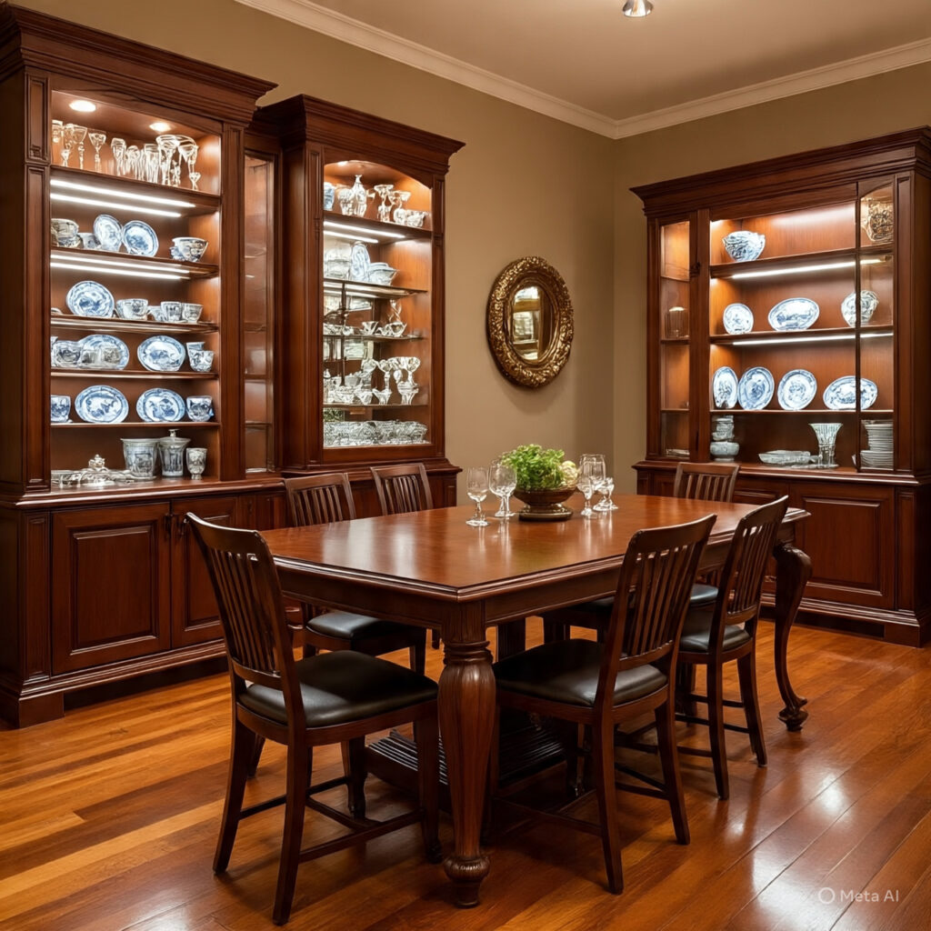 Sideboards, cabinets, or even built-in shelving offer both storage and style. Displaying curated dinnerware or decorative pieces makes the room functional and elegant.