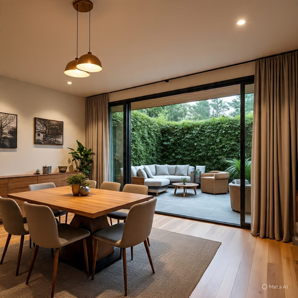 If you have access to a patio or balcony, extend your dining room outward. Large glass doors or foldable walls can blur the line between indoors and outdoors.