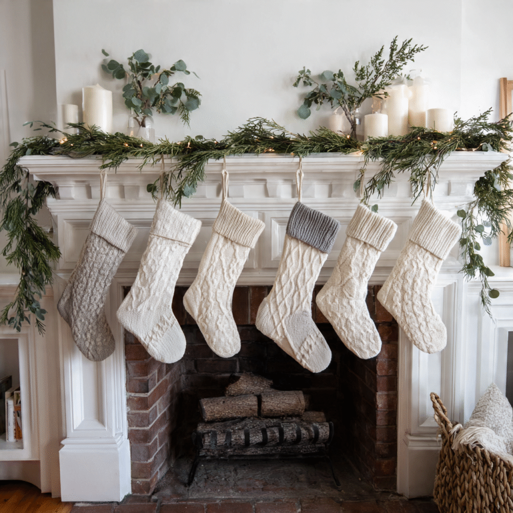 Ditch the bright red stockings and choose linen or burlap ones instead. Embroider names in gold thread or tie small neutral ribbons for a delicate touch.