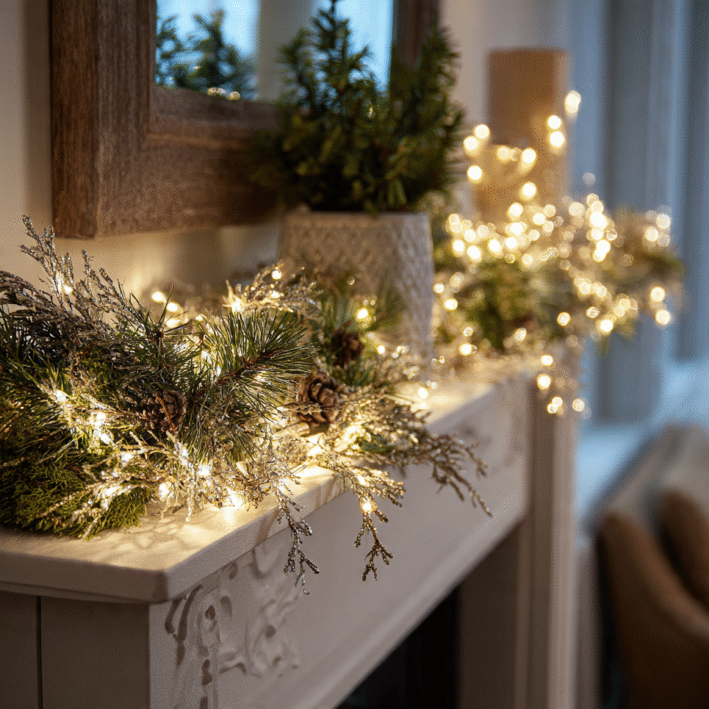 Fairy lights instantly make any neutral setup magical. Drape them around mirrors, garlands, or along shelves for a cozy, twinkling atmosphere.